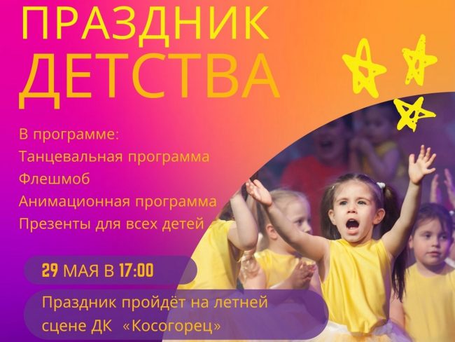 29 мая в 17:00 пройдёт праздничная программа, посвященная дню защиты детей!