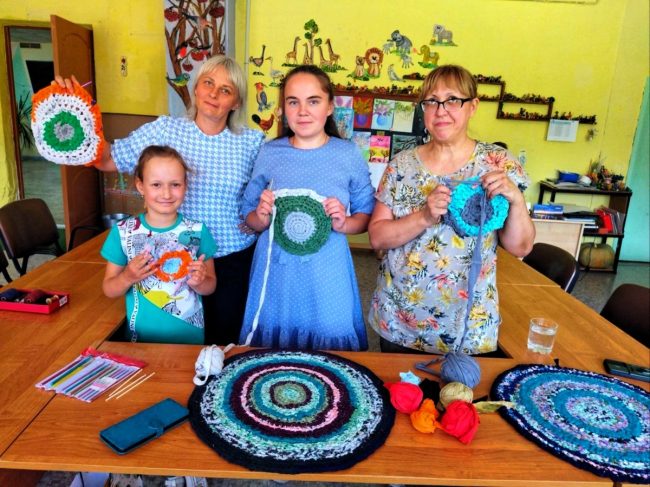 Как подарить вторую жизнь старой футболке? Например, связать из неё симпатичный и оригинальный коврик. В “КУЛЬТУРНО-ДОСУГОВОМ КОМПЛЕКСЕ” прошёл мастер-класс по вязанию ковриков. Наши мастерицы и жительницы посёлка – Перепечина Антонина Сергеевна и Ульянова Ольга Константиновна – показали всем желающим различные техники вязания ковриков. Оказалось очень захватывающее и в тоже время успокаивающее…