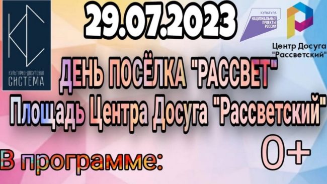 29 ИЮЛЯ 2023 года Центр досуга “Рассветский” приглашает всех на День рождения поселка Рассвет!!! День поселка ― это всегда доброе и светлое торжество для большой семьи односельчан, которые непременно знают друг друга. Сотрудники Центра досуга подготовили много всего интересного для дорогих гостей. Подробнее о событии в сообществе. Мероприятие проводится в рамках национального…