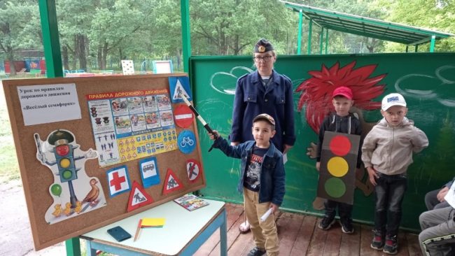 На площадке Рождественской сельской библиотеки состоялся урок по правилам дорожного движения «Весёлый семафорик»