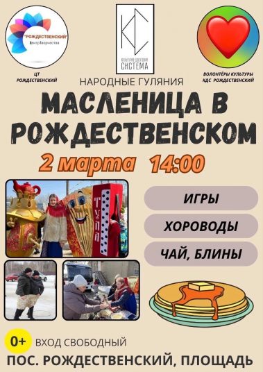 На всём протяжении мероприятия будут работать волонтёры культуры КДС “Рождественский”.