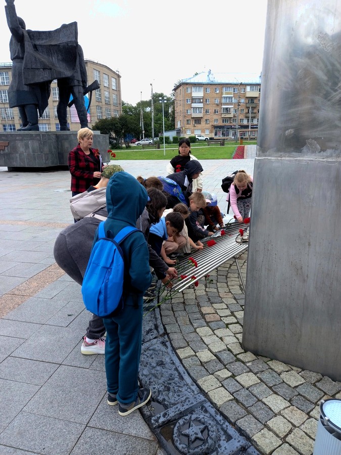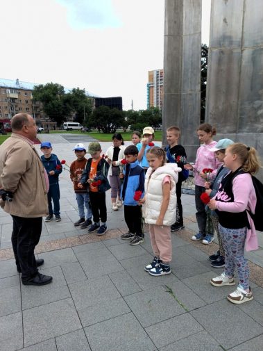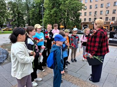 В память о погибших героях войны дети приняли участие в акции “Свеча Памяти”: зажгли свечи, читали стихи, почтили память павших минутой молчания и к Вечному огню возложили цветы, в знак уважения подвигу советских солдат, погибших в годы Великой Отечественной войны.