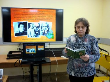 Из рассказа библиотекаря и видео презентации, участники мероприятия узнали о жизни и творчестве Константина Симонова, интересных фактах его биографии, работе в годы Великой Отечественной войны на фронте, его литературном наследии.