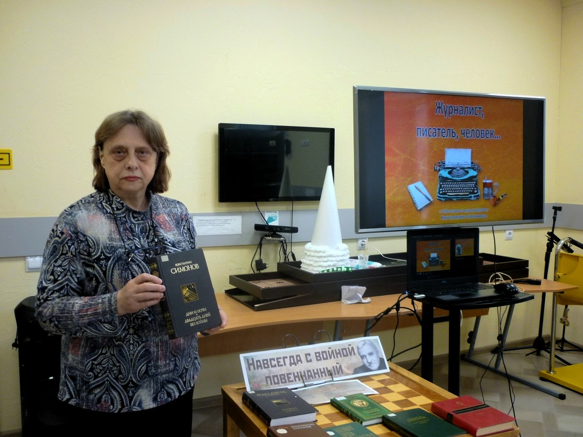 Из рассказа библиотекаря и видео презентации, участники мероприятия узнали о жизни и творчестве Константина Симонова, интересных фактах его биографии, работе в годы Великой Отечественной войны на фронте, его литературном наследии.