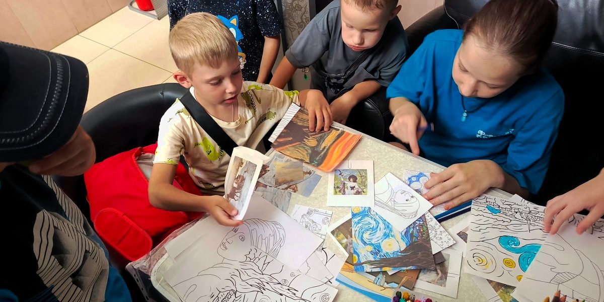 Для ребят из пункта временного размещения в отеле “Гранд” сотрудники Центральной городской библиотеки имени Л.Н. Толстого провели час творчества “Искусство – это интересно”.