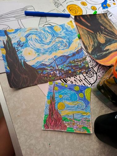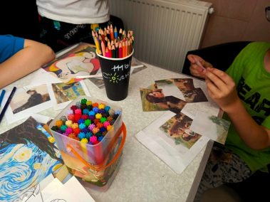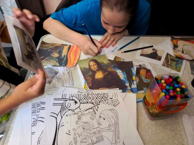 Дети с интересом занимались реставрацией картин, возвращая им цвет при помощи карандашей и фломастеров, активно применяя своё воображение. В конце мероприятия детям было предложено собрать паззлы, представляющие собой картины известных художников.