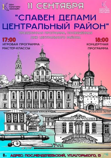 – ️ 18:00: Яркий праздничный концерт “Славен делами Центральный район”.