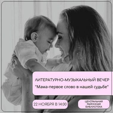 Тульская библиотечная система подготовила для вас ряд увлекательных мероприятий, посвящённых Дню Матери. Вас ждут литературно-музыкальные вечера, чтения, мастер-классы.