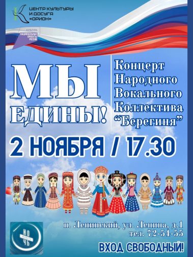 Дорогие друзья! Мы рады пригласить Вас на праздничный концерт Народного вокального коллектива “Берегиня”, который пройдёт в рамках Всероссийской акции “Ночь искусств”, приуроченной ко Дню народного единства.