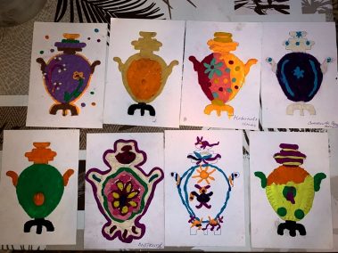 В русской культуре самовар символизировал гостеприимство и уют, а оружие — силу и защиту. Вместе они отражают разные стороны национальной идентичности. Поэтому мы провели мастер-класс по пластилинографии, и все смогли сделать на память об этом дне прекрасные самовары!