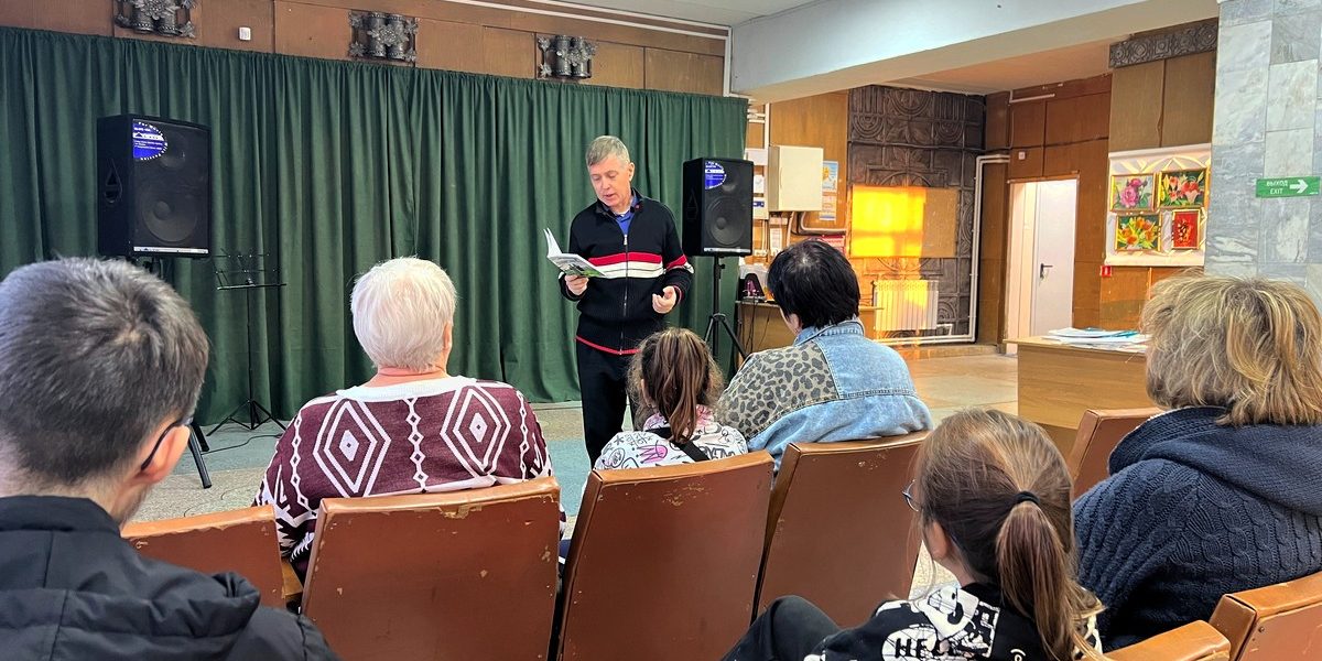 Перед зрителями выступил русский поэт, представитель межрегионального творческого объединения «Русь» Рассказов С.В. Автор рассказал о себе, о своих произведениях, о темах, которые он раскрывал в своих стихах. Присутствующие познакомились с выставкой его книг и поэзией.
