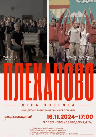 16 ноября в 17:00 состоится концертно-развлекательная программа ко Дню посёлка Плеханово