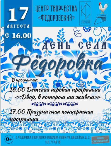 Приглашаем ВСЕХ жителей и гостей села Фёдоровка на большой праздник, посвящённый ДНЮ СЕЛА ФЁДОРОВКА