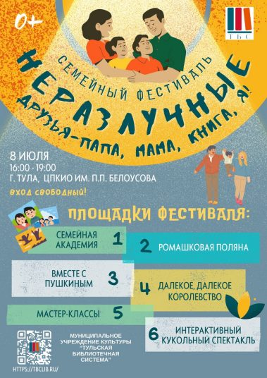 В День семьи, любви и верности в Центральном парке культуры и отдыха имени П. П. Белоусова Тульская библиотечная система проводит семейный фестиваль “Неразлучные друзья – папа, мама, книга, я!”, посвященный Году семьи.
