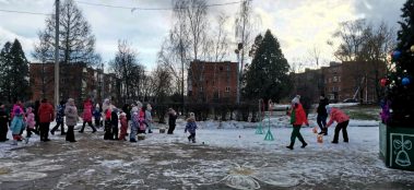 Ребята собрались на зимние забавы, чтобы поиграть, повеселиться, потанцевать на свежем воздухе с нашими Грустинкой и Смешинкой. Все с удовольствием принимали участие в играх.