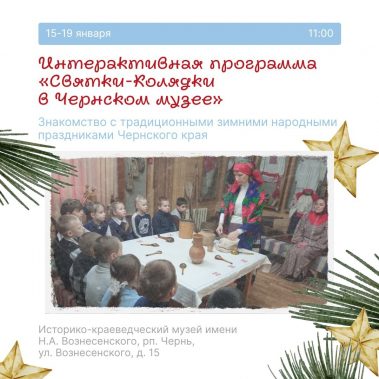 В ближайшие дни мы сможем посетить музейный кинотеатр, сходить на мастер-класс, принять участие в шуточных гаданиях и узнать про день рождения Снеговика.