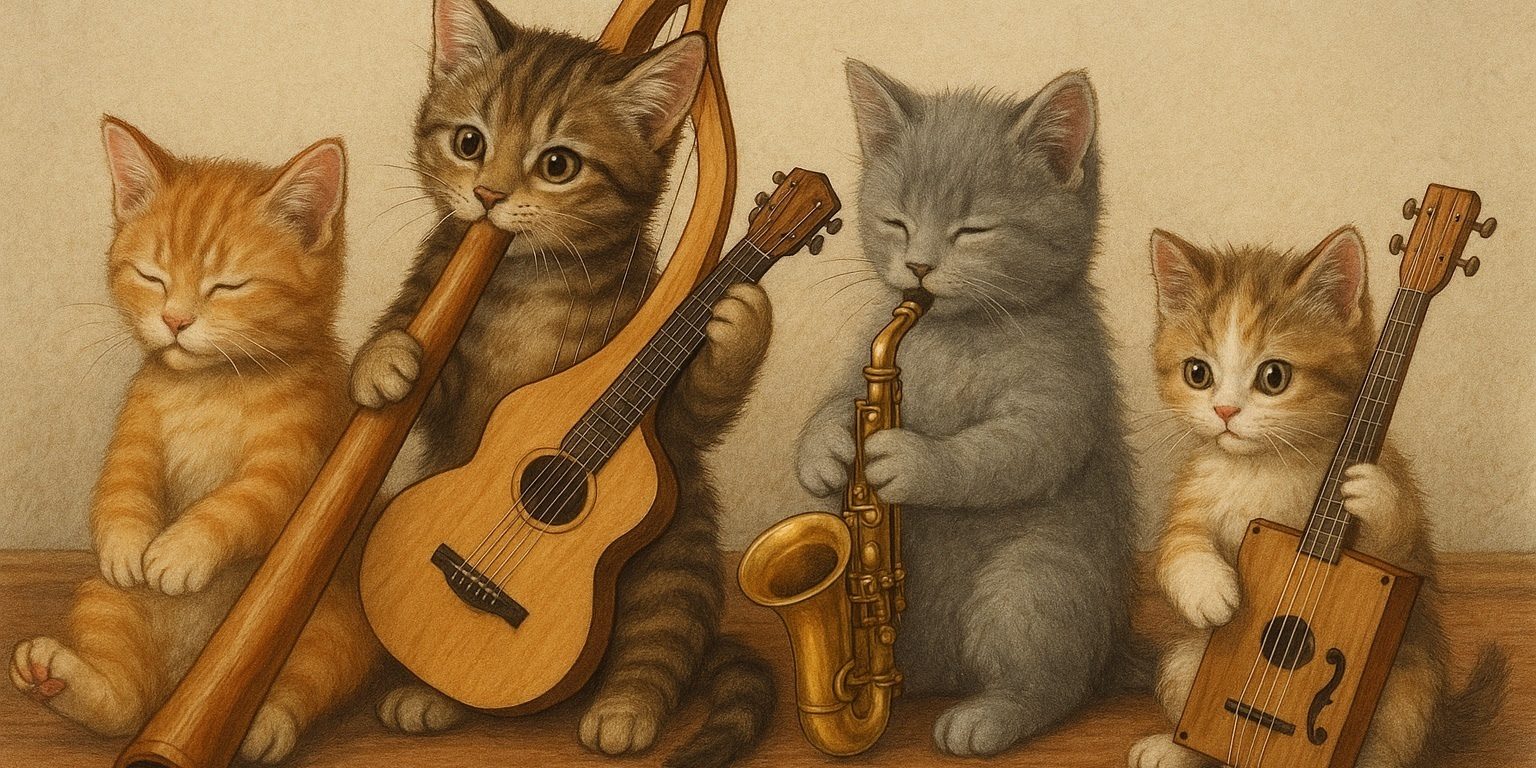 А пока предлагаем вам проверить свои знания музыкальных инструментов! Напишите в комментариях, какие инструменты в лапках наших котят вы узнали
