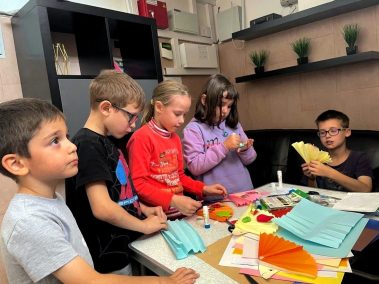 Ребята учились делать ярких лесных ежиков, которых в конце украсили их листьями, яблоками и грибами. Мероприятие сопровождала книжная выставка “Живой мир вокруг нас”.