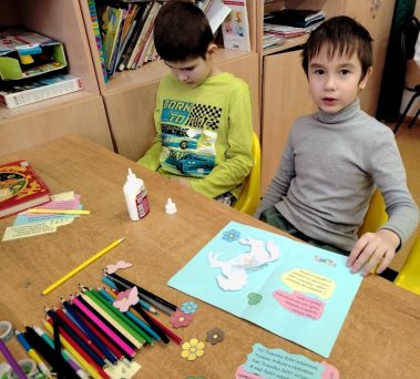 В начале участники мероприятия познакомились с легендами и сказками об этих животных, а затем ребята перешли к творческой части и создали открытки с лошадками.