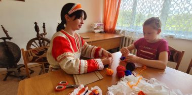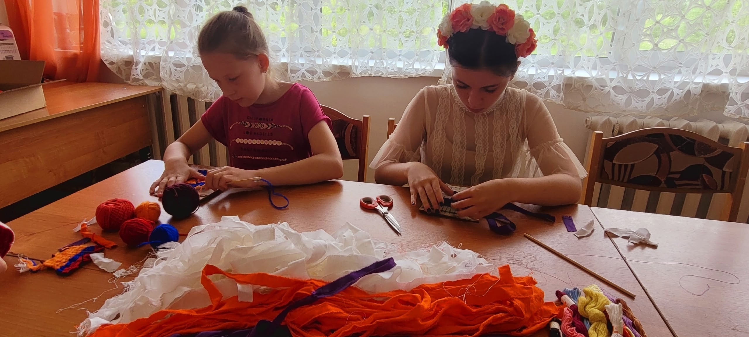 На маленьких “ткацких станках” помогли освоить азы ткачества и изготовить небольшие коврики.