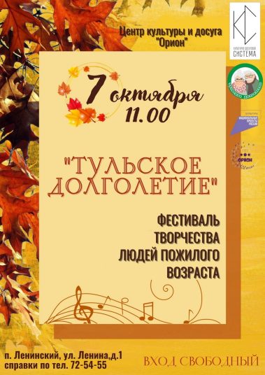 В Центре культуры и досуга “Орион” состоится Фестиваль творчества людей пожилого возраста “Тульское долголетие”, посвященный прекрасному празднику – Международному дню пожилых людей!