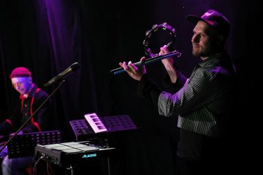Перкуссионист и по совместительству ведущий концерта Роман Александров держал себя в руках на протяжении всего вечера. Практически не пел и не танцевал даже на мелодиях “Короля и Шута” и индийских мотивах… Но как только зазвучали бодрые ковбойские ритмы, не выдержал и показал чудеса хореографии