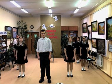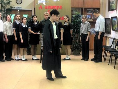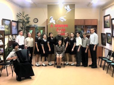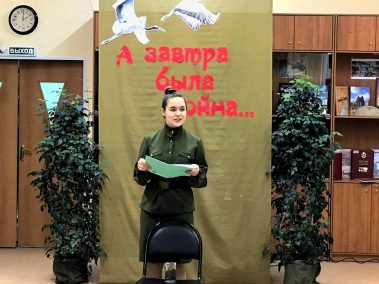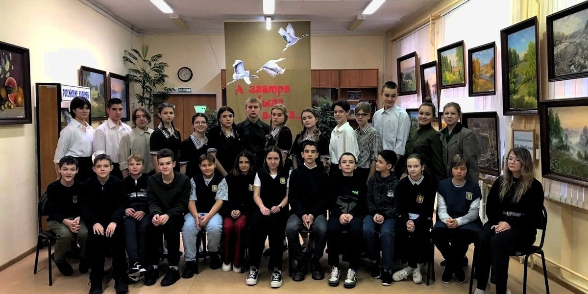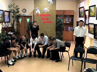 4 декабря 2023 года Юные актеры театра-студии “Премьера” (старший состав) Зареченской детской школы искусств в преддверии 82-й годовщины ОБОРОНЫ ГОРОДА-ГЕРОЯ ТУЛЫ представили в модельной библиотеке № 3 им. В. Ф. Руднева спектакль по повести Бориса Васильева “Завтра была война”.
