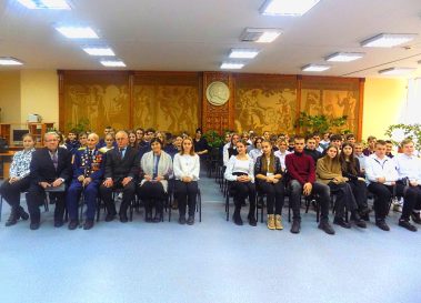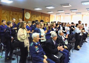 Василий Алексеевич поделился с молодежью своими военными воспоминаниями; пожелал юношам и девушкам любить Родину, помнить заслуги старших поколений, стремиться к знаниям в век компьютеризации и новейших технологий, проявлять характер в самых сложных ситуациях и ценить мир, который был завоеван в тяжелейших условиях. Зал приветствовал и аплодировал ветерану стоя!