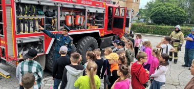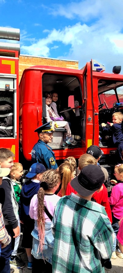 Сотрудники пожарно – спасательной части показали пожарно-техническое оснащение пожарной машины. Также продемонстрировали ребятам предметы одежды, пожарно-спасательный инвентарь.