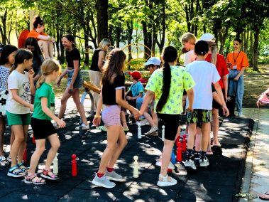 Участники были разделены на команды и соревновались в подвижных играх и интеллектуальных викторинах.