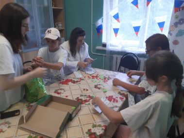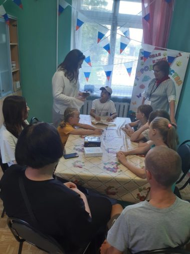 Дождь не портит настроение! Перебираемся в Дом культуры и продолжаем играть и веселиться!