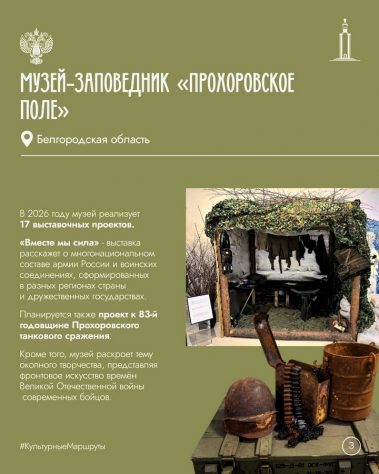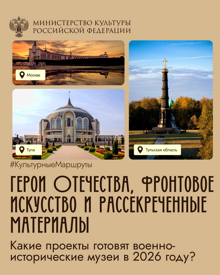 Наши #КультурныеМаршруты расскажут о сражениях и героях, повседневной жизни на войне, труде в тылу, роли искусства и слова, а также о преемственности воинских традиций.