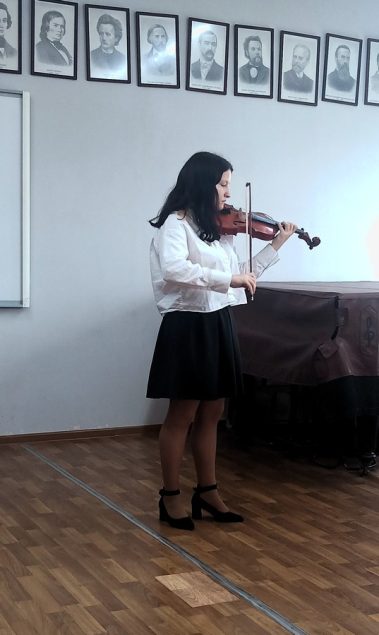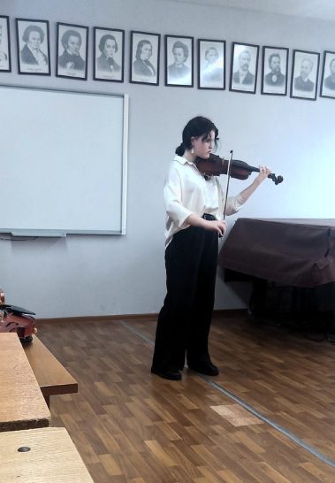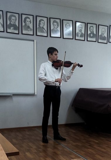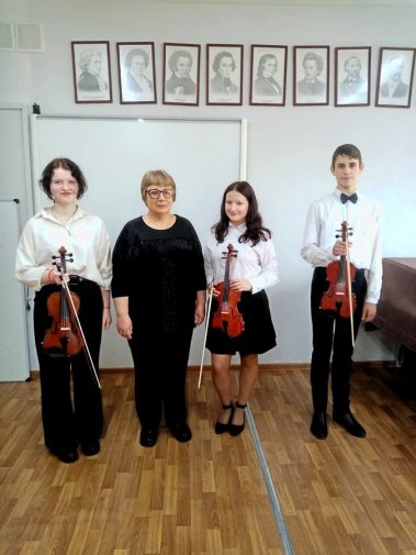Все трое скрипачей – ученики 8 класса Ларисы Геннадьевны Гераськиной. Выпускная программа состояла из 3 произведений, за исполнение которой все выпускники получили Оценку “5”(отлично):