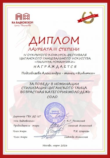 Александра Подсобляева – танец “Кибитка” (хореограф Елены Крассовой)