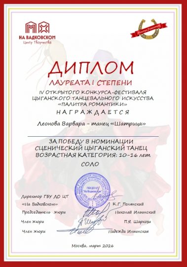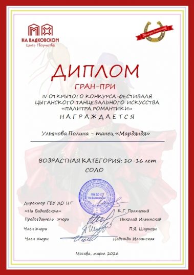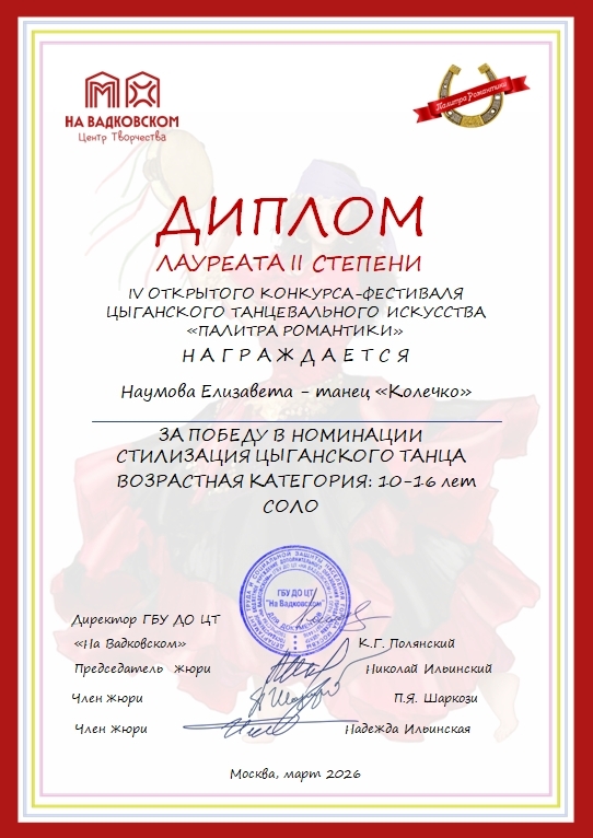Благодарим организаторов фестиваля «Палитра Романтики» за создание возможности для реализации своего творчества