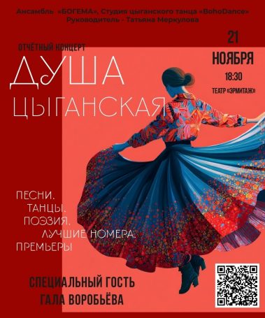 Это большой отчётный концерт цыганского ансамбля “Богема” и студии цыганского танца BohoDance под руководством Татьяны Меркуловой!