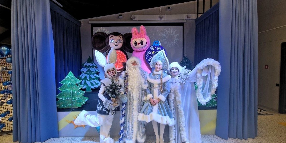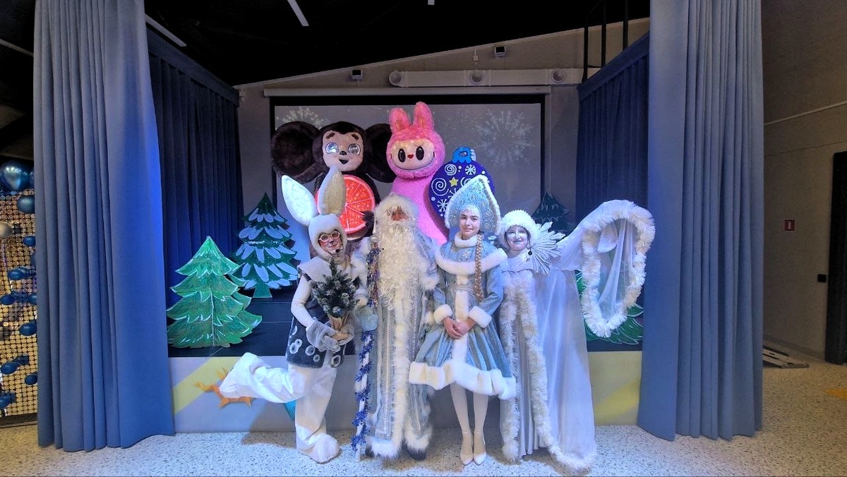 Дети встретились с любимыми героями — Чебурашкой, Лабубой, Бабой-Ягой, Дедом Морозом, его внучкой Снегурочкой и верным другом Зайчиком
