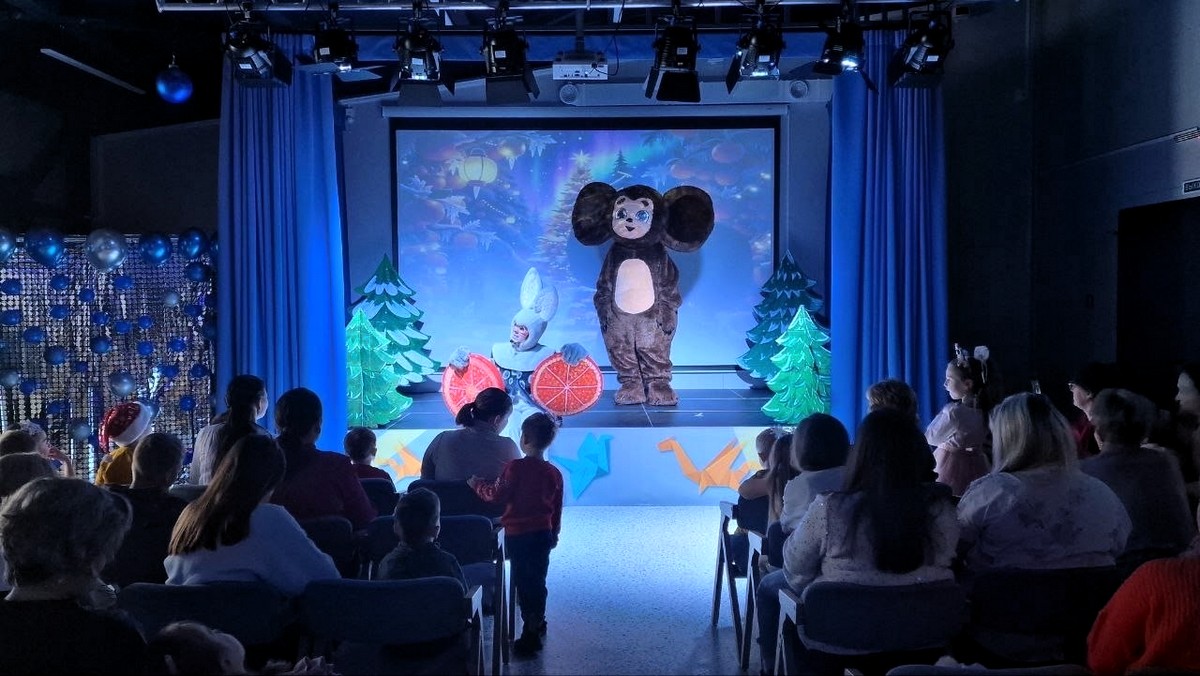 Новогоднее представление для детей в Центре творчества “МОЛОДЁЖНЫЙ” стало настоящей сказкой! Все с нетерпением ждали встречи с любимыми героями — Чебурашкой, Лабубой, Бабой-Ягой, Дедом Морозом, его внучкой Снегурочкой и верным другом Зайчиком