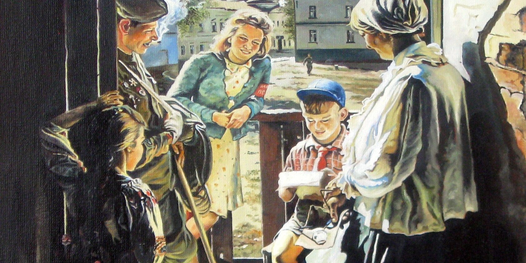 Идея для будущей картины пришла к Лактионову в один из летних дней 1943 года, когда он встретил раненого солдата, который нес письмо семье своего сослуживца. Солдат, опираясь на палку и с плащ-палаткой через плечо, попросил художника помочь найти нужный адрес. По дороге они разговорились о жизни на фронте, о приближающейся Победе и о важности письма.