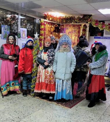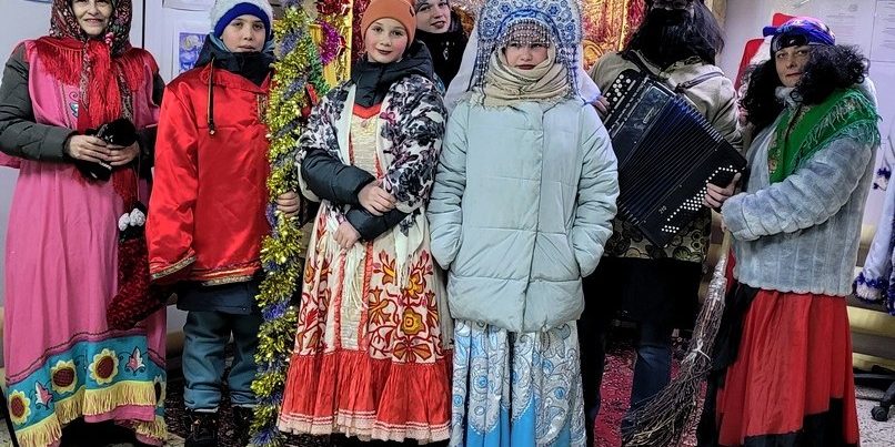 в костюмах ряженых колядовали по родному поселку. Постарались постучать в каждый дом, хозяева были в восторге и надавали нам целый мешок сладостей.