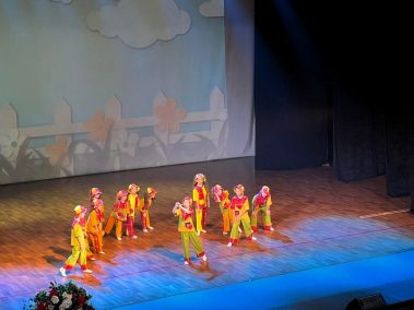 Нашим “Звёздочкам” выпала честь подарить цветы возрастным участникам клуба по скандинавской ходьбе, а потом своим номером “Песенка про счастье” завершить концерт!