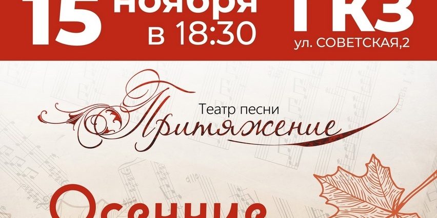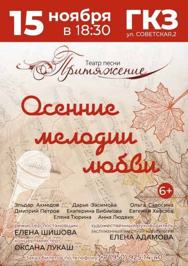 15 ноября в 18:30 наши артисты подарят самые невероятные эмоции и впечатления зрителям, которые придут в Городской концертный зал на наш концерт “Осенние мелодии любви” .