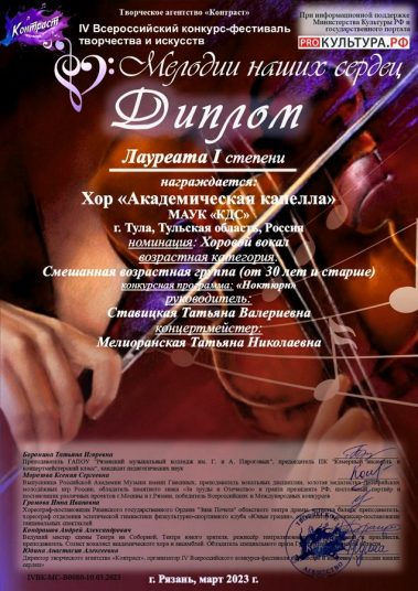 Коллектив “Городского концертного зала” хор “Академическая капелла” принял участие в IV всероссийском конкурсе-фестивале творчества и искусств “Мелодия наших сердец” г.Рязань.