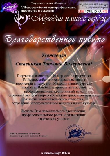 Желаем коллективу дальнейших творческих успехов и достижений!!!