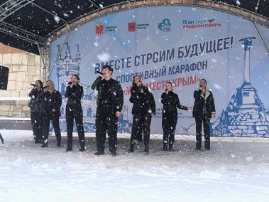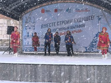 В торжественной концертной программе, в рамках мероприятия “МЫ ВМЕСТЕ КРЫМ”, несмотря на капризы погоды – сильный ветер и продолжительный снегопад, приняли участие сотрудники и творческие коллективы “Культурно-досуговой системы”: