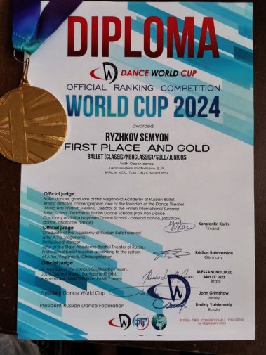 1 место и золото Кубка DWC 2024 классическая хореография за номер “Танец Океана” в возрастной категории Юниоры 13-15 лет.