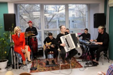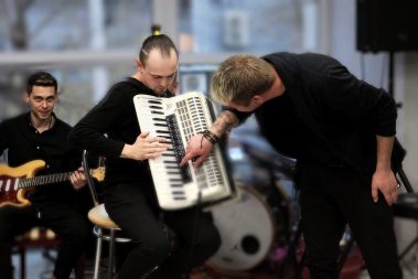 Порадовали всех гостей вечера собственные (и очень необычные) аранжировки известных хитов Sade, Depeche Mode, Michael Jackson, Eurythmics, Shocking Blue, Люси Чеботиной… Особенно шикарной получилась версия песни “Город” группы Танцы Минус в стиле танго, исполненная на аккордеоне!