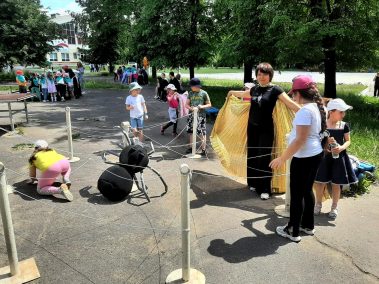 Дети угадывали животных, спасались от паука, познакомились с Мойдодыром, участвовали в эстафетах и творческих заданиях.