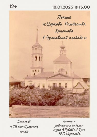 18 января 2025 года в 15.00 ч. в читальном зале библиотеки состоится лекция “Церковь Рождества Христова в Чулковской слободе” в рамках проекта “Святыни Тульского края”, организованный отделом Музея древнерусской культуры и искусства имени А. Рублева в Туле.