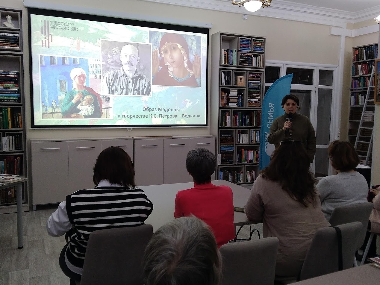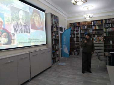 В минувшую субботу в Центральной городской библиотеке имени Л.Н. Толстого состоялась лекция Юлии Геннадьевны Корнаковой, заведующей отделом Музея имени Андрея Рублева в Туле, посвященная образу Богородицы в творчестве Кузьмы Петрова-Водкина.